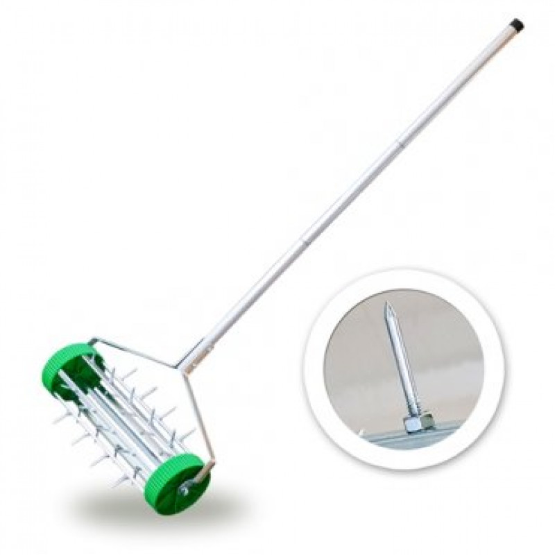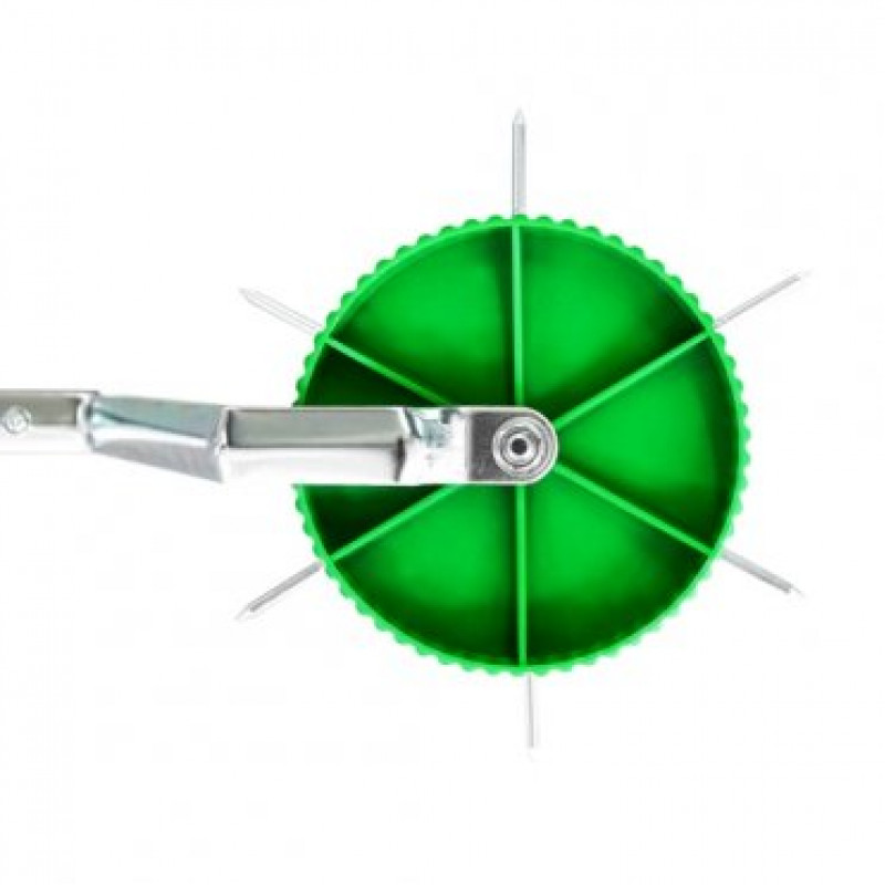 Аератор виготовлений з якісних матеріалів: метал в парі з міцним пластиком, які забезпечують легкість інструменту і довгий термін служби. Ширина барабана 40 см дозволяє швидко обробити обрану ділянку. Аератор складається з 27 шипів довжиною 5 см, які ефективно проникають в грунт для розпушування.