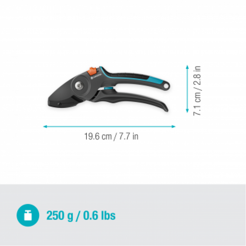 Секатор Gardena PremiumCut Pro dry wood із ковадлом 24 мм - інструмент призначений для обрізання сухих гілок діаметром до 24 мм.