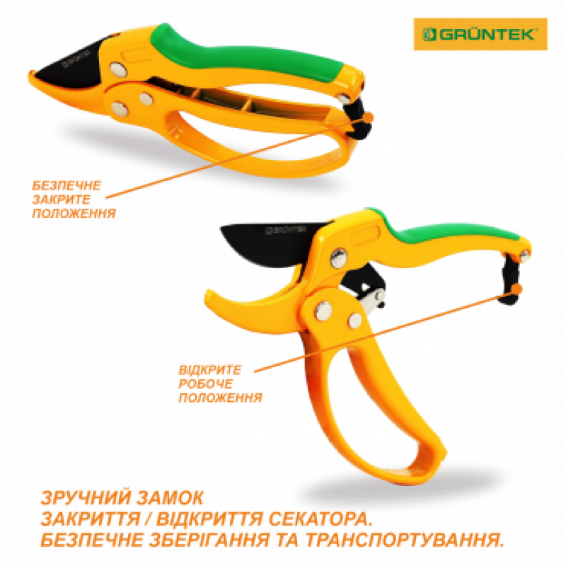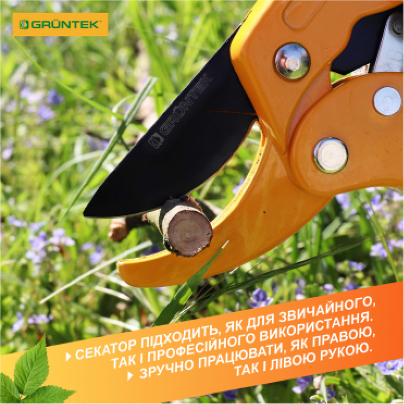 Gruntek Uhu 205 мм - секатор для зрізання гілок з кущів, з виноградника, з дерев діаметром до 24 мм.