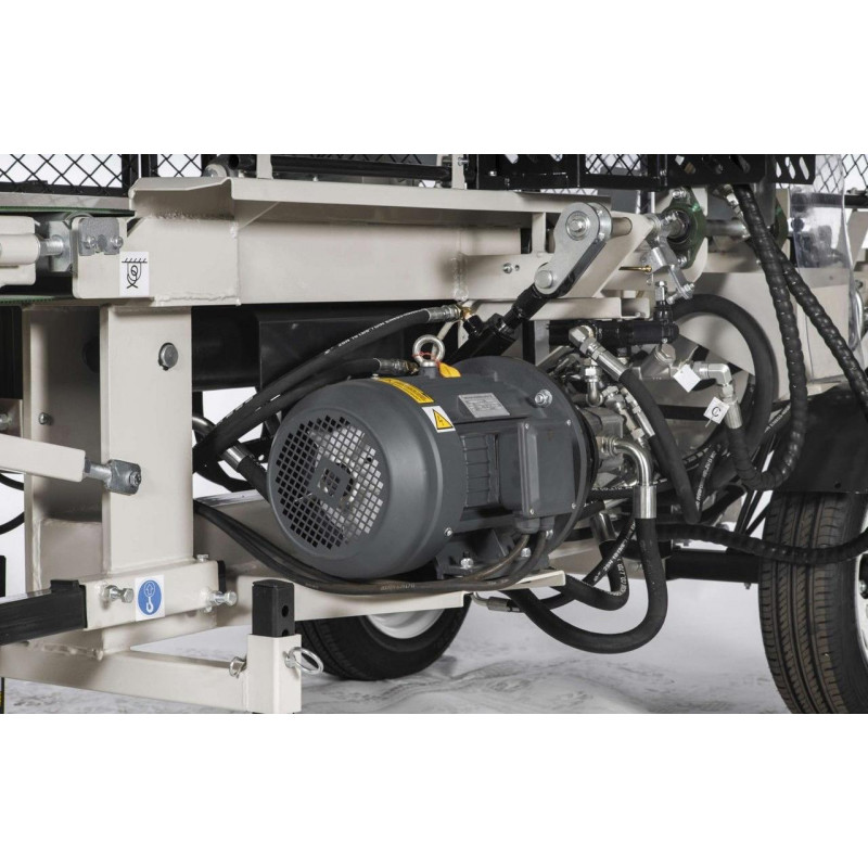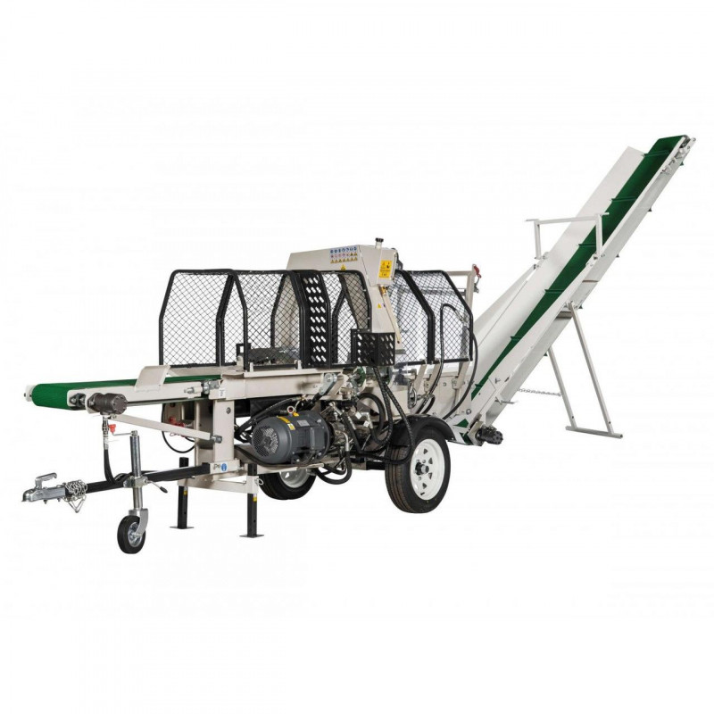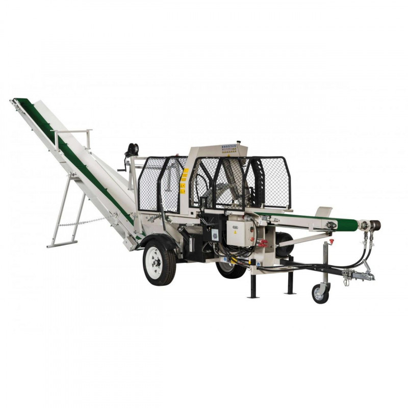 Напівавтоматична машина для різання і розколу дров Lumag SSA500EHPRO - це ефективне і надійне обладнання, яке виконує одразу три процеси. Ланцюгова пила розпилює деревину на задану довжину, потім колун розколює попередньо розрізаний брусок на 2 або 4 частини. За допомогою стрічкового транспортера довжиною 3,2 м дрова транспортуються безпосередньо на причіп чи у інше обране вами місце. Максимальна висота подачі деревини становить 2 метри.