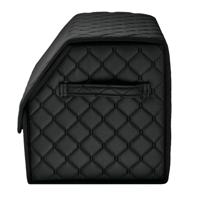 Сумка-органайзер Beltex з екошкіри розміром S (35×30×30 см) — компактне рішення для зберігання речей в авто. Виготовлена з міцної екошкіри, стійкої до вологи та зношування. Має зручну кришку на липучці та ручки для перенесення. Ідеально підходить для багажника або салону — для автохімії, інструментів чи покупок.