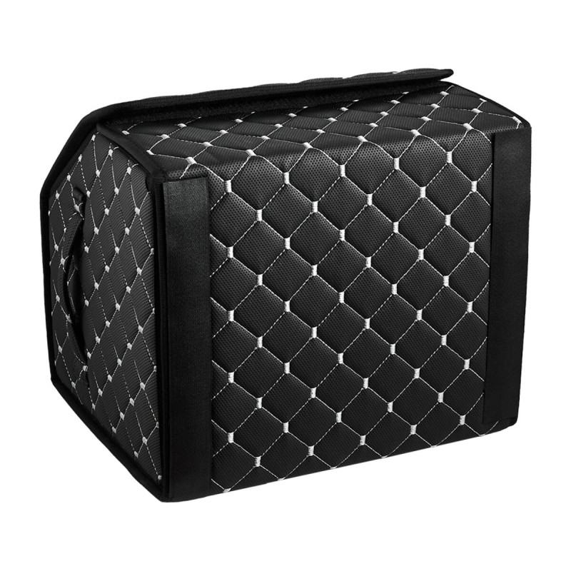 Сумка-органайзер Beltex з екошкіри розміром S (35×30×30 см) — компактне рішення для зберігання речей в авто. Виготовлена з міцної екошкіри, стійкої до вологи та зношування. Має зручну кришку на липучці та ручки для перенесення. Ідеально підходить для багажника або салону — для автохімії, інструментів чи покупок.
