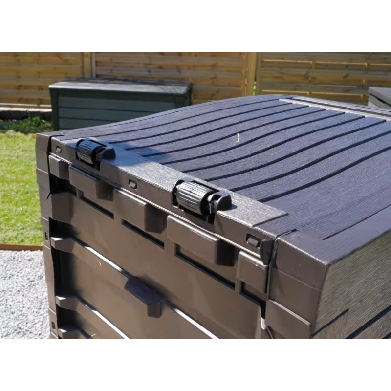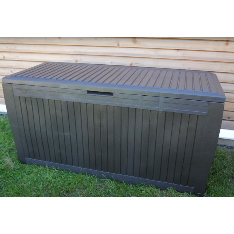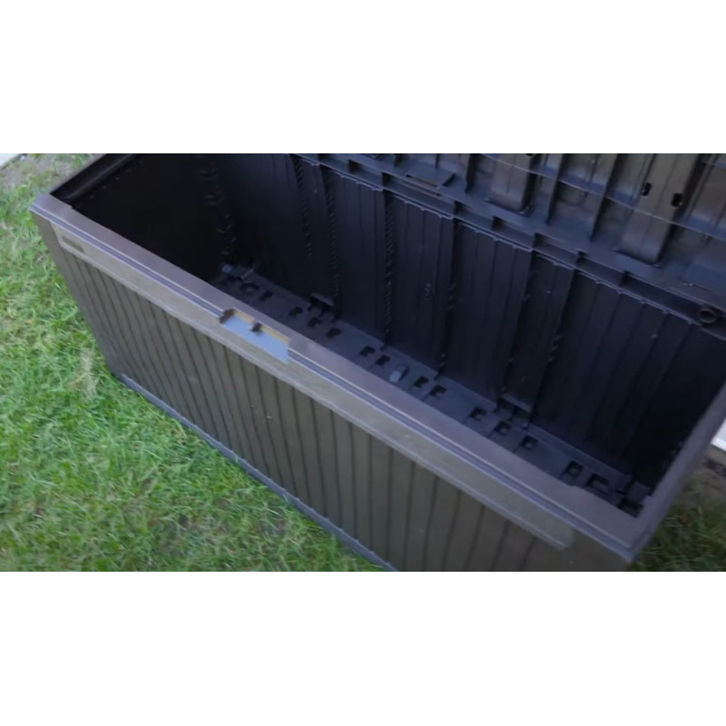 Comfy Storage Box 270 — це практичний і стильний ящик для зберігання, який стане ідеальним доповненням до вашого садового або терасного простору. Виготовлений з високоякісного вдосконаленого поліпропілену, цей садовий ящик поєднує в собі довговічність, зручність і привабливий зовнішній вигляд. Матеріал з імітацією деревини надає виробу натурального вигляду, але не потребує спеціального догляду, як справжнє дерево.Обʼєм ящика — 270 літрів, чого цілком достатньо для зберігання подушок від меблів, садового інвентарю, дитячих іграшок або інших необхідних речей. Система вентиляції забезпечує циркуляцію повітря, що захищає вміст від вологи та неприємного запаху. Завдяки наявності коліс та вбудованих ручок ящик легко переміщується по садовій ділянці без зайвих зусиль.Переваги Короб для зберігання оснащений коліщатками та вбудованими ручками, що значно полегшує транспортування навіть у заповненому стані; Міцна конструкція кришки витримує навантаження до 200 кг, тому ящик можна використовувати як додаткове сидіння; Виготовлений із стійкого до УФ-випромінювання та вологи поліпропілену, що гарантує довговічність навіть просто неба; Не потребує фарбування чи спеціального догляду, легко миється водою; Можливість закривання на навісний замок забезпечує додаткову безпеку (замок не входить до комплекту).