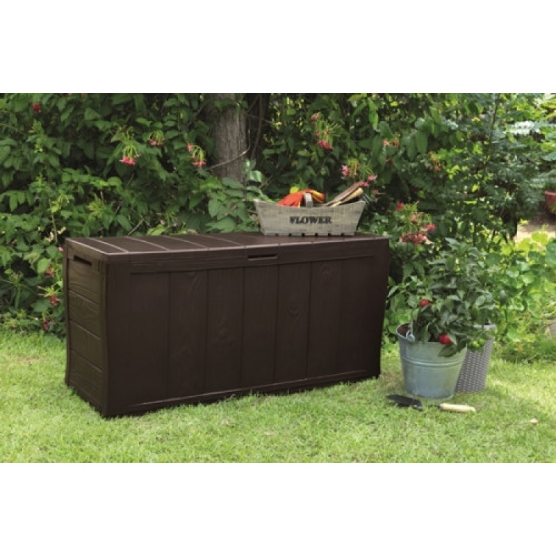 Ящик ідеальний для вуличного зберігання і розрахований на будь-які погодні умови; не вимагає фарбування, легко збирається. Можливість використання в якості столика.