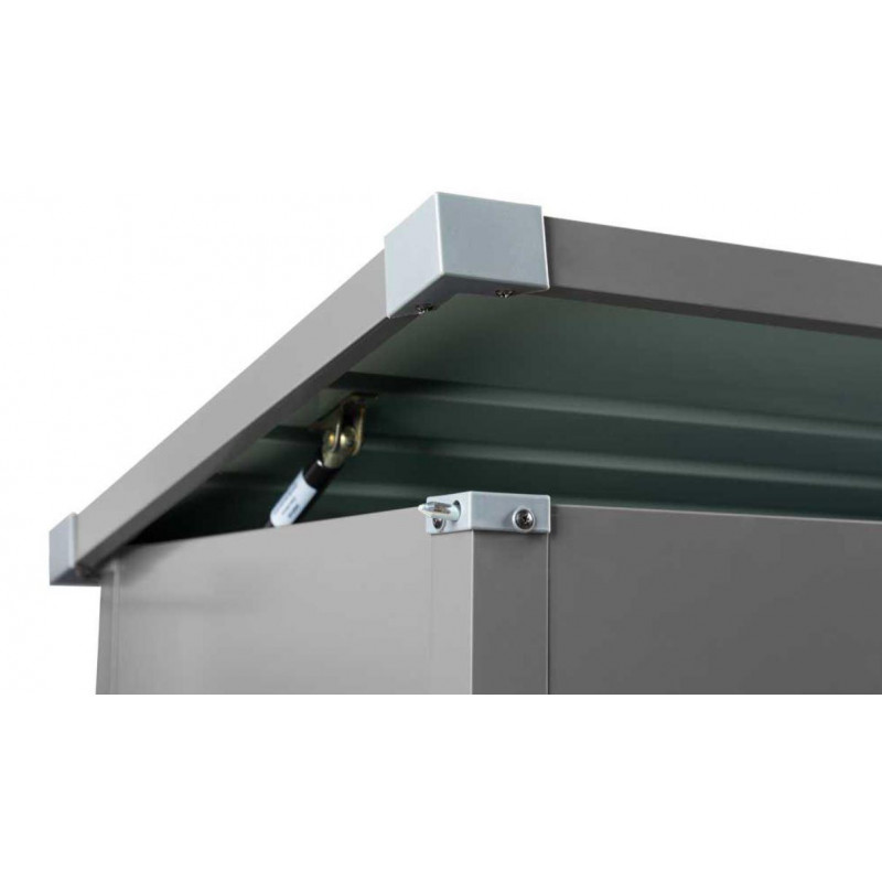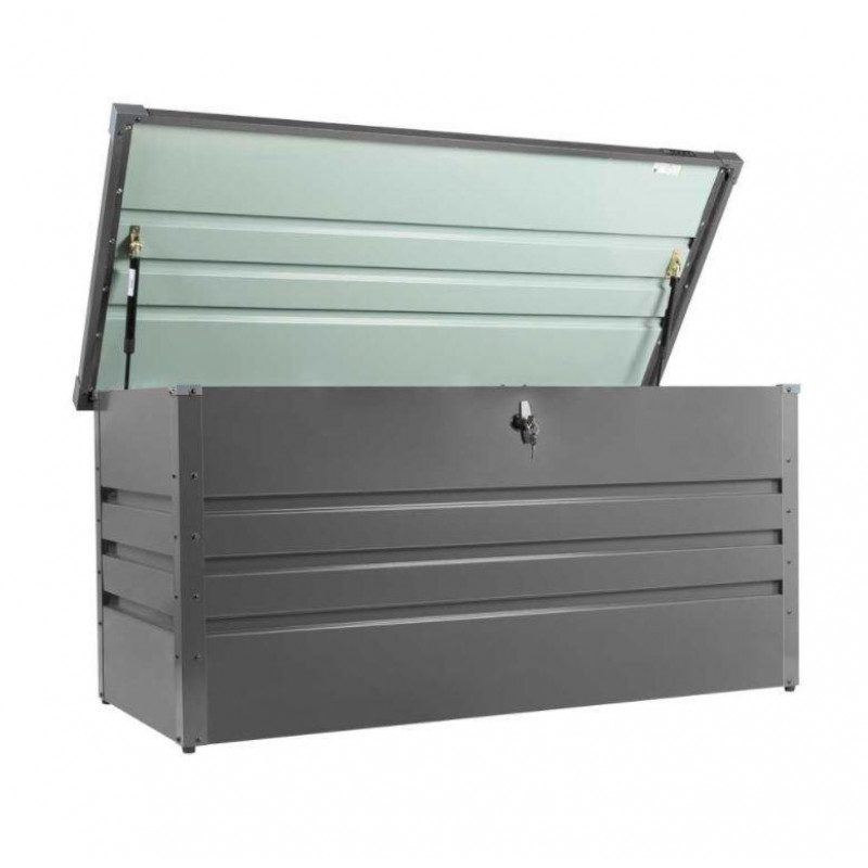Вантажопідйомність ящика становить 80 кг, максимальне навантаження на кришку - 50 кг. 2 газові пружини забезпечують плавне і легке відкривання кришки. Для захисту особистих речей ящик закривається на ключ. Для уникнення контакту з вологою і додаткової вентиляції дно підняте над землею на ніжках. Вага пустого ящика - 24 кг, тому його можна легко перемістити в зручне місце. Цей садовий ящик для зберігання допоможе підтримувати порядок на ділянці і мати необхідні речі завжди під рукою.
