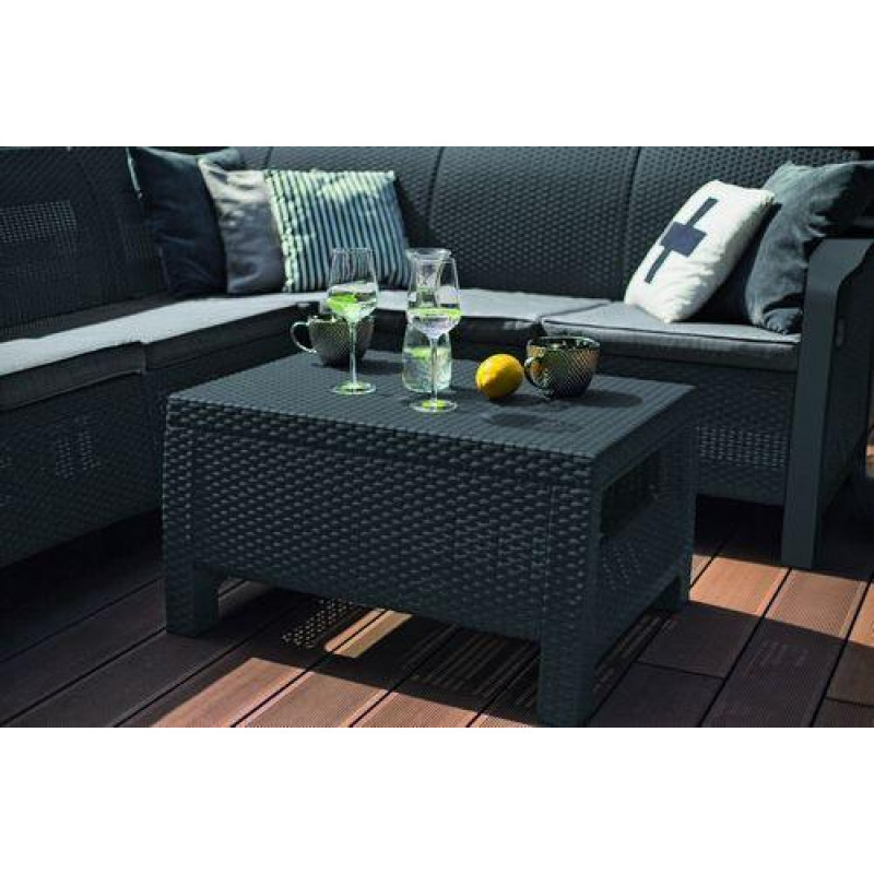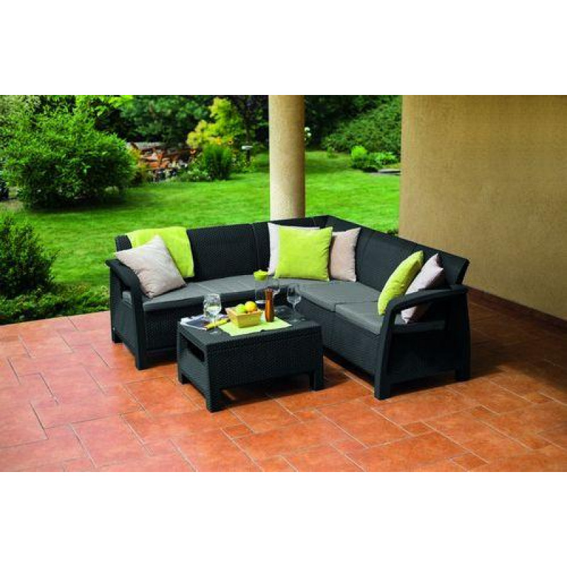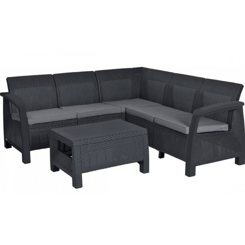 Комплект садових меблів Keter Bahamas Relax — стильне та практичне рішення для створення зони відпочинку на відкритому повітрі. Двосекційний диван утворює зручну кутову софу, яка забезпечує комфортне розміщення до 4 осіб. Столик зі скрізною конструкцією ідеально підходить для напоїв та легких закусок. Меблі виготовлені з міцного поліпропілену з фактурою під ротанг, стійкого до вологи, ультрафіолету та перепадів температур. Сірий колір з графітовим відтінком чудово поєднується з сучасним ландшафтним дизайном, а м’які подушки додають затишку та зручності. Простий догляд і легке складання роблять цей комплект чудовим вибором для терас, балконів і садів.Особливості Кутовий диван і столик виконані з поліпропілену з імітацією плетіння ротанга — стильний вигляд і стійкість до погодних умов; Колір комплекту — прохолодний графітово-сірий, універсально підходить під різні стилі оформлення; М’які подушки в комплекті забезпечують додатковий комфорт і підтримують анатомічну посадку; Меблі не вицвітають під впливом ультрафіолету, не бояться дощу та легко очищуються звичайною водою; Максимальне навантаження на кожне посадкове місце дивана — до 110 кг, на стіл — до 30 кг; Просте складання та зручне пакування — комплект постачається у двох коробках розміром 120×80×42 см та 120×80×35 см; Легка вага та міцна конструкція спрощують переміщення меблів і забезпечують її стійкість; Компактні розміри та ергономічний дизайн дозволяють встановити комплект навіть на невеликій терасі або балконі;Варіанти використання Організація лаунж-зони в саду, на балконі або критій терасі для вечірнього відпочинку з друзями; Облаштування сімейного куточка просто неба з комфортними сидіннями та місцем для частувань; Набір пластикових садових меблів можна використовувати в літніх кафе, кемпінгах або базах відпочинку як недороге й стильне рішення; Меблювання веранд, терас і патіо на дачі чи в заміському будинку з мінімальними витратами на догляд; Ідеальний варіант для сезонного розміщення без потреби укриття — меблі стійкі до зовнішніх впливів.