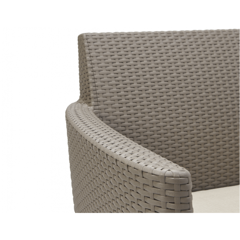 | Преимущества | • эргономичный дизайн • стилизация поверхности под плетеный ротанг • съемный чехол подушек • крепкий погодостойкий пластик • не ржавеет и не гниет • легкий в установке и уходе |
