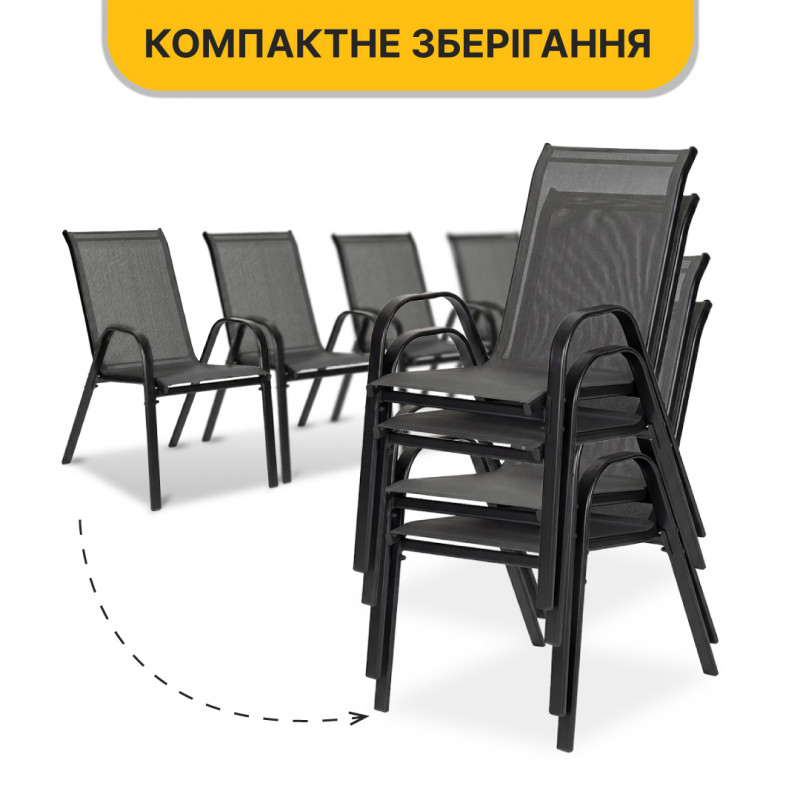 - Розширений комплект — 6 зручних крісел та великий функціональний стіл