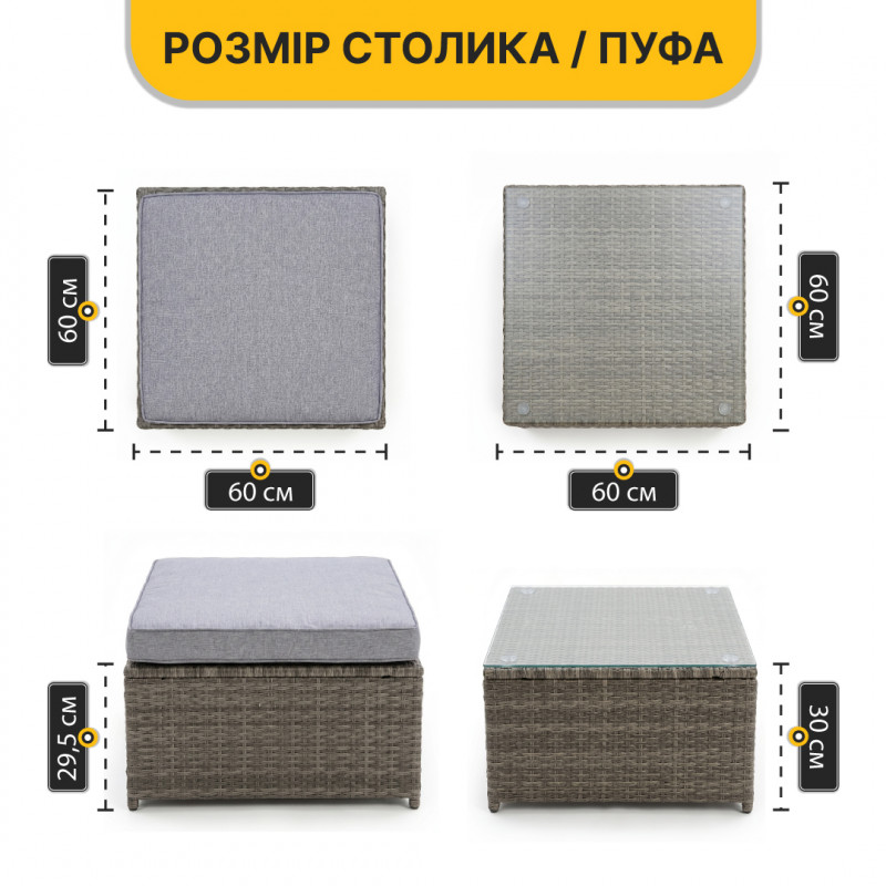 Стильний та функціональний комплект садових меблів стане ідеальним рішенням для облаштування тераси, балкона чи саду. Завдяки сучасному дизайну та якісним матеріалам, набір забезпечує комфортний відпочинок і довговічність у використанні.