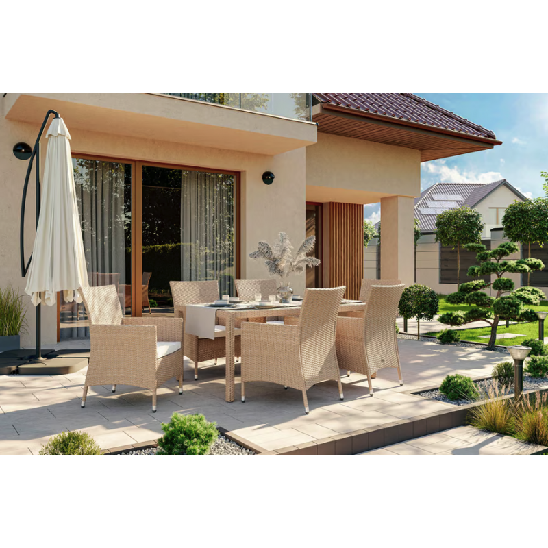 Любите веселі посиденьки з друзями або ж затишні вечори в сімейному колі? Що б ви не вибрали, садові меблі Di Volio VERONA стануть ідеальною прикрасою вашого саду. Елегантний дизайн, приємний колір, майстерне плетіння з ротанга - на мить ви перенесетеся в затишний дворик італійської Верони. Відчути дух культового міста просто - потрібно купити набір "Садові меблі Di Volio VERONA з ротанга" від італійського бренду Di Volio. Di Volio - це відмінна гарантія якості та справедливої ціни на всю її продукцію. Збираючись замовити меблі від Di Volio, шукайте тільки перевірені сайти. У набір меблів Di Volio VERONA входять елегантні крісла універсального кольору, великий стіл зі скляною стільницею, м'які подушки, кріпильні елементи та спеціальний захисний чохол.