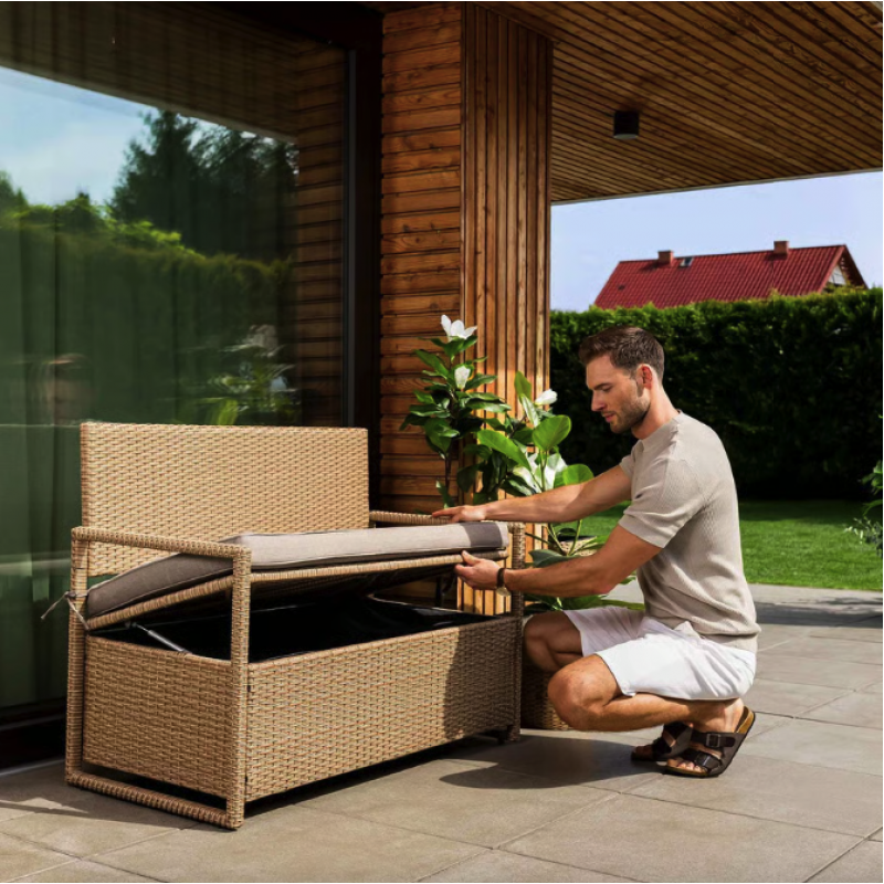 Ви мрієте про меблі, які не тільки прикрасять ваш сад чи терасу, але й принесуть реальну користь? Садова лавка Di Volio Verbana - це ідеальне поєднання витонченого дизайну, практичності та високої якості. Стильний техноротанг на міцному сталевому каркасі, зручна подушка, велике відділення для зберігання - усе це робить Verbana незамінним елементом вашого простору. Насолоджуйтесь затишком і порядком одночасно!