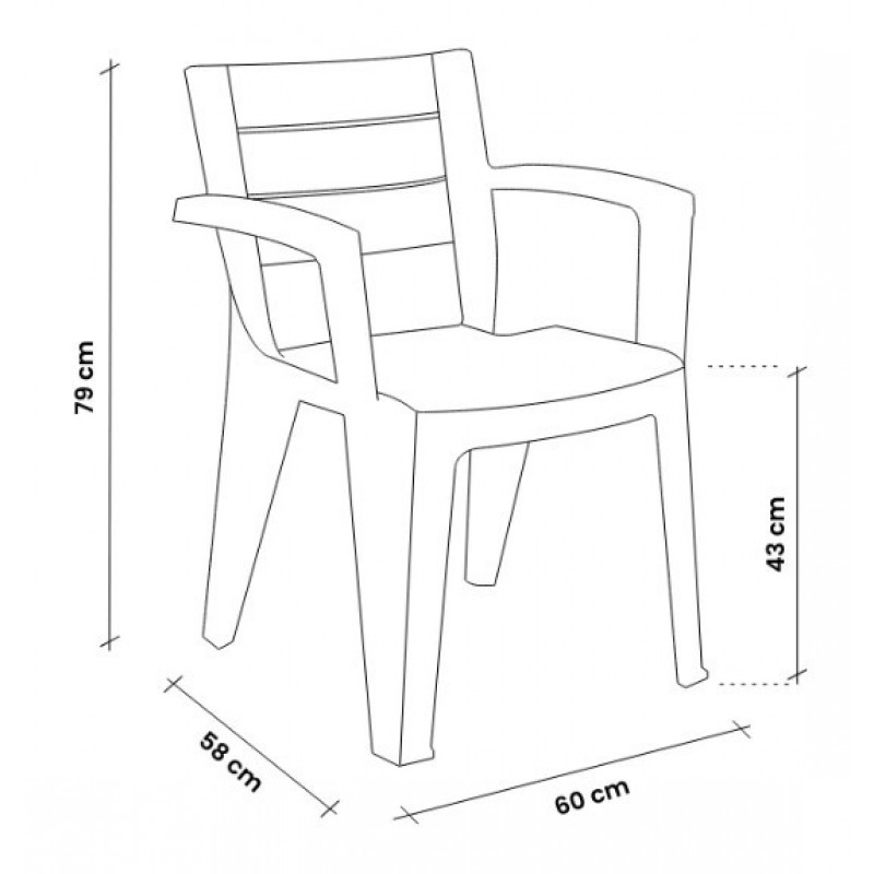 Стілець садовий пластиковий Bica Emma — це ідеальне рішення для відкритих місцевостей, таких як сад, тераса, зона барбекю чи пляж. Вишуканий графітовий колір прикрасить будь-який інтер’єр чи екстер’єр, а продумана конструкція створює максимальний комфорт.Особливості товару Крісло пластикове має широкі підлокітники забезпечують комфорт під час відпочинку; Ергономічна спинка з вентильованими отворами для циркуляції повітря; Стійкість до впливів довкілля: пластикові стільці для дачі від Bica не схильні до іржі та гниття; Водонепроникний та стійкий до УФ-випромінювання матеріал забезпечує стійкість кольору; Легке миття та чищення завдяки глянцевій поверхні; Конструкція передбачає штабелювання.Крім основних функцій, садові меблі Bica зарекомендували себе як виріб для довготривалого використання. Висока якість пластикової рами забезпечує його стійкість до деформацій, а сучасний дизайн підходить для різних стилів декору.