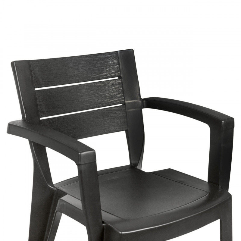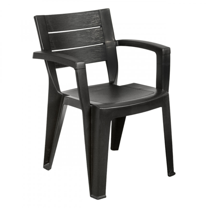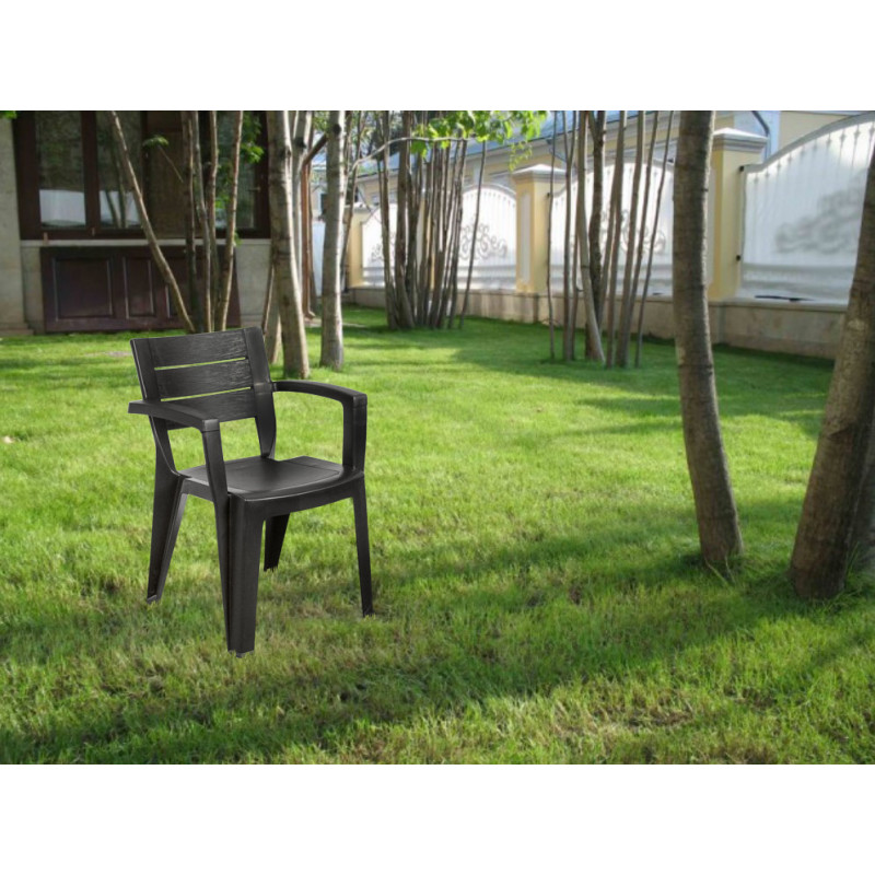 Стілець садовий пластиковий Bica Emma — це ідеальне рішення для відкритих місцевостей, таких як сад, тераса, зона барбекю чи пляж. Вишуканий графітовий колір прикрасить будь-який інтер’єр чи екстер’єр, а продумана конструкція створює максимальний комфорт.Особливості товару Крісло пластикове має широкі підлокітники забезпечують комфорт під час відпочинку; Ергономічна спинка з вентильованими отворами для циркуляції повітря; Стійкість до впливів довкілля: пластикові стільці для дачі від Bica не схильні до іржі та гниття; Водонепроникний та стійкий до УФ-випромінювання матеріал забезпечує стійкість кольору; Легке миття та чищення завдяки глянцевій поверхні; Конструкція передбачає штабелювання.Крім основних функцій, садові меблі Bica зарекомендували себе як виріб для довготривалого використання. Висока якість пластикової рами забезпечує його стійкість до деформацій, а сучасний дизайн підходить для різних стилів декору.