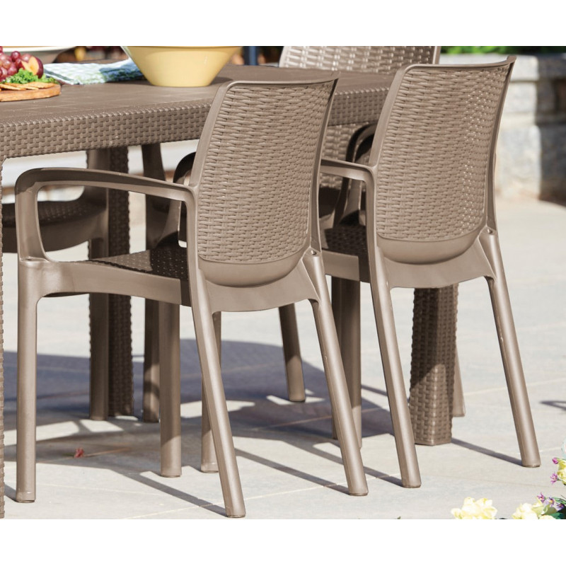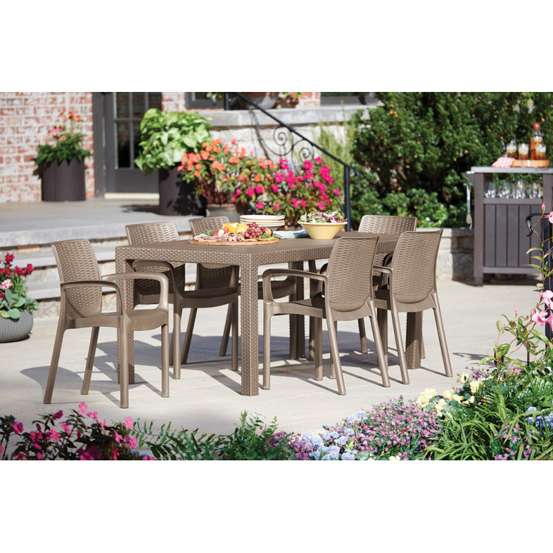 | Преимущества | • стильная отделка под ротанг • цвет не выгорает и не тускнеет • неметаллическая рама - не ржавеет и не поддается гниению • эргономичный дизайн • легко собирается |