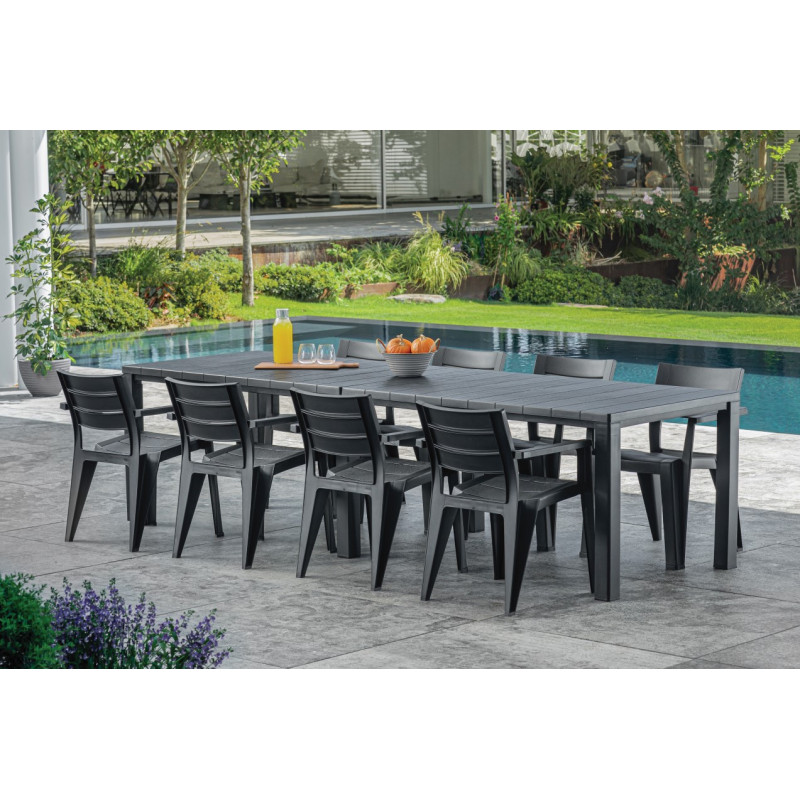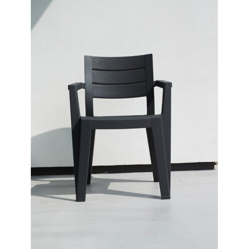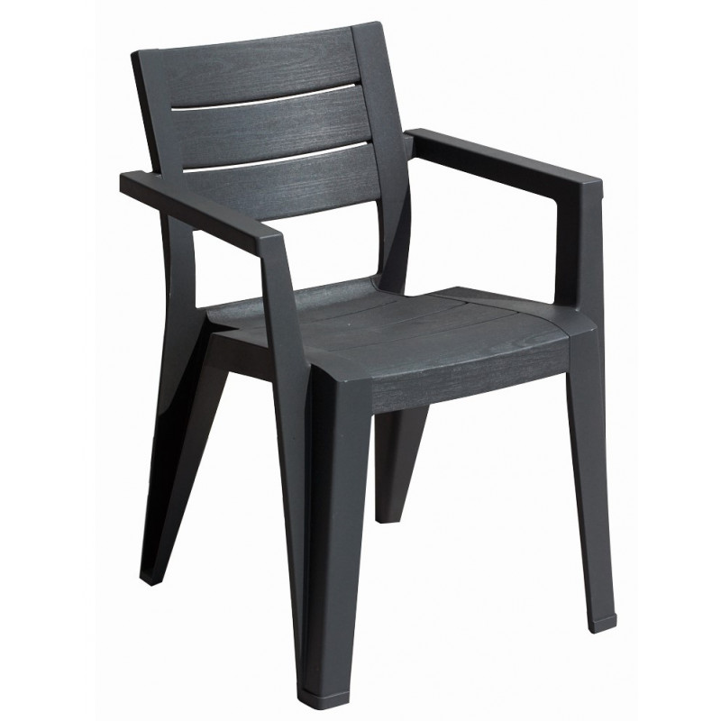Стілець садовий пластиковий Keter Julie, сірийСучасний дизайн стільців Julie підходить до багатьох видів столів, а стільці можна вставляти один в один - це головна перевага зручних стільців Julie. Ідеальні для дому і саду.Ергономічний дизайн.Зроблено з міцного пластику.Неметалева рама - не іржавіє і не гниє.Завдяки стійкому до високих температур поліпропілену, кольори не вигорають і не бліднуть.Легко мити і зручно зберігати.Штабелюються.