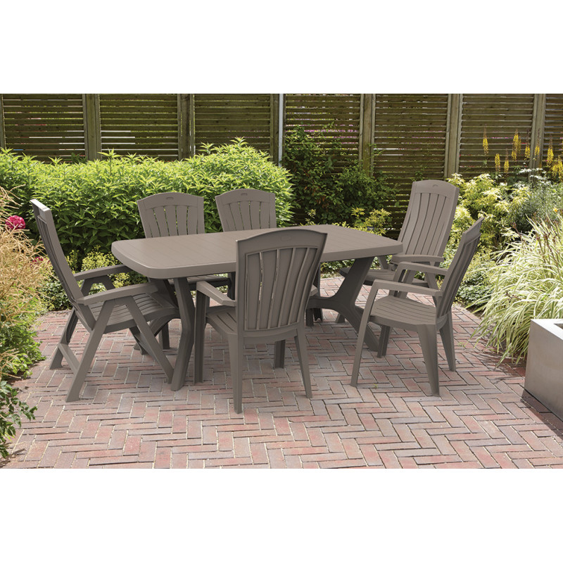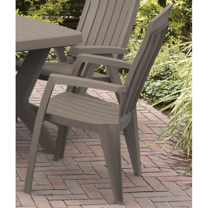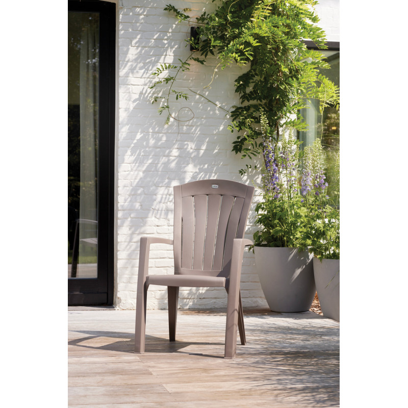Стілець садовий пластиковий Keter Santorini, бежево-сірий — це зручне й практичне рішення для облаштування відкритих просторів. Він виготовлений із міцного пластику, стійкого до погодних умов, і має універсальний дизайн, що легко вписується в будь-який ландшафт. Ергономічна форма та широкі підлокітники забезпечують комфорт навіть під час тривалого сидіння. Стілець ідеально підійде для дачі, тераси, альтанки або вуличного кафе. Він простий у догляді та легко переноситься завдяки малій вазі, а можливість штабелювання дозволяє заощаджувати місце під час зберігання.Переваги Стільці для вулиці Santorini не вигорають на сонці завдяки стійкості до ультрафіолетового випромінювання — зберігають насичений колір навіть за тривалого використання на вулиці; Не потребує мийних засобів — достатньо промити водою або протерти вологою ганчіркою, що спрощує догляд і заощаджує час; Міцна конструкція витримує навантаження до 110 кг, гарантуючи довговічність і безпеку при щоденному використанні; Легко штабелюється — кілька стільців можна складати один на одного, економлячи місце для зберігання в міжсезоння; Ергономічна вигнута спинка забезпечує зручну посадку, підтримуючи природне положення спини; Пластмасові стільці Santorini стійкі до корозії та вологи - не іржавіють, не гниють і не деформуються; Сучасний стильний вигляд гармонійно поєднується з будь-яким вуличним інтер’єром і іншими елементами пластикових меблів.