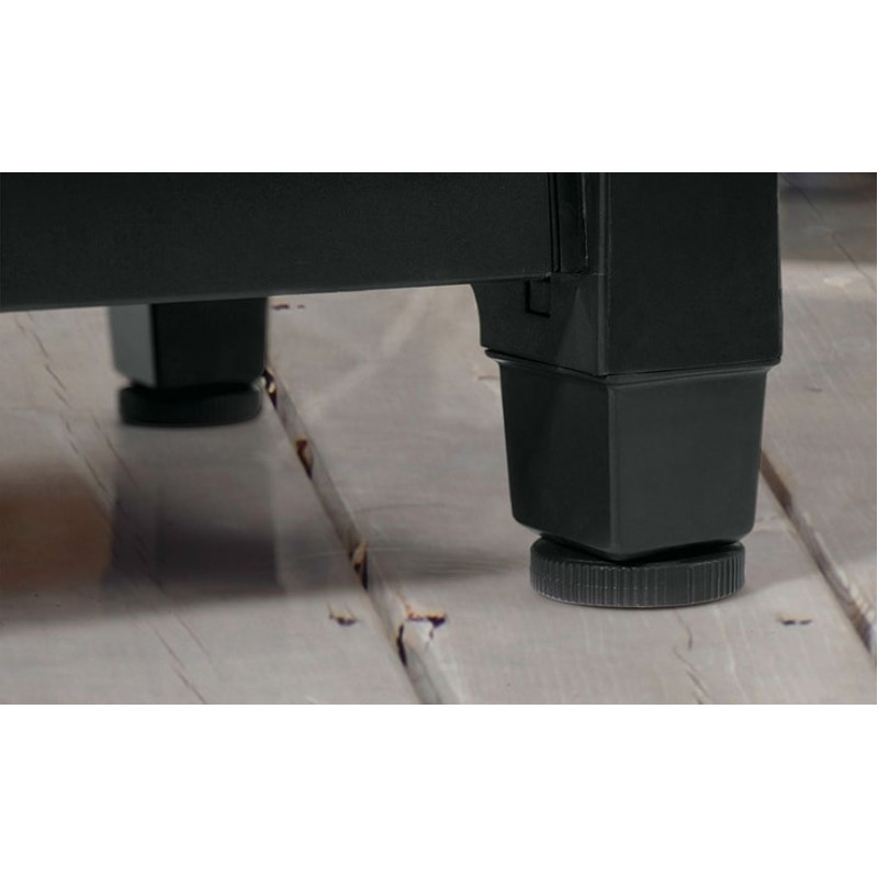 Комплектация изделия | • столешница с покрытием из нержавеющей стали • однодверный шкаф для хранения • открытая полка между столешницей и шкафом • боковая полочка для специй • держатель для бумажных полотенец|• нержавеющий боковой держатель с четырьмя крючками для подвешивания аксессуаров для барбекю • регулируемые ножки – 2 шт • пластиковые колесики – 2 шт • открывалка для бутылок |