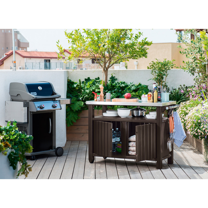 Стіл-буфет садовий для барбекю Keter UNITY XL, коричневий, 207 л
