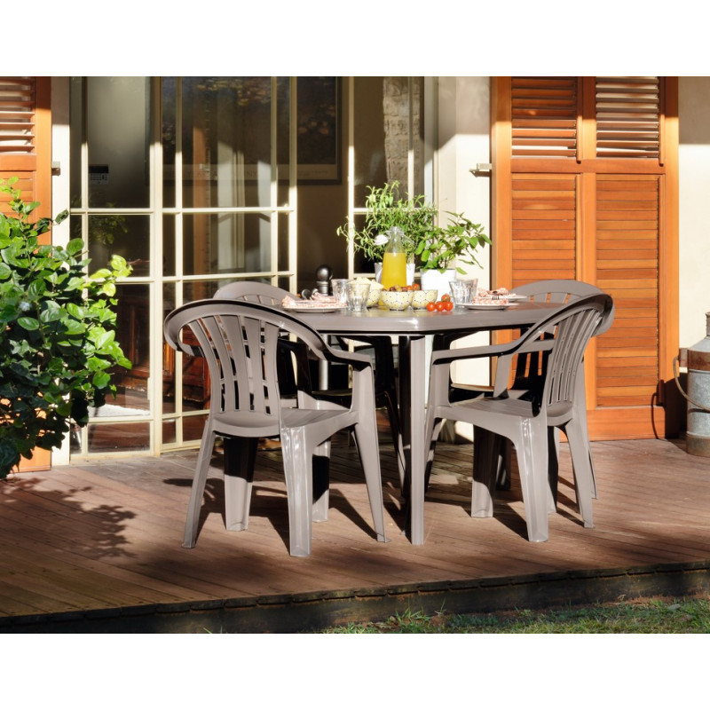Стіл для саду пластиковий Keter Elise, бежевийПластиковий стіл - економічне і практичне рішення для дачі. Пластикові столи коштують недорого, не потребують особливого догляду, довго служать і не втрачають зовнішній вигляд.Пластиковий стіл Elise - це стіл з пластику, до якого ви зможете підібрати стільці виробництва компанії KETER і скласти таким чином обідній комплект для дачі.Стіл Elise ідеальний для відпочинку сім'ї, також може бути використаний для літнього кафе.Переваги:Ергономічний дизайнВиготовлений з міцного пластикуНеметалева рама - не піддається гниттю і не іржавієКолір не вигорає на сонціЛегко мити і зручно зберігатиОтвір для парасолькиМатеріал: пластик, поліпропілен;Колір: бежевий;Бренд: Curver® (Угорщина);Розмір: 137*90*73 смВага: 6,5 кгМакс. навантаження: 75 кгРозмір упаковки: 136*90*7,3 см ВАРІАЦІЯ КОЛЬОРУ:СІРИЙ
