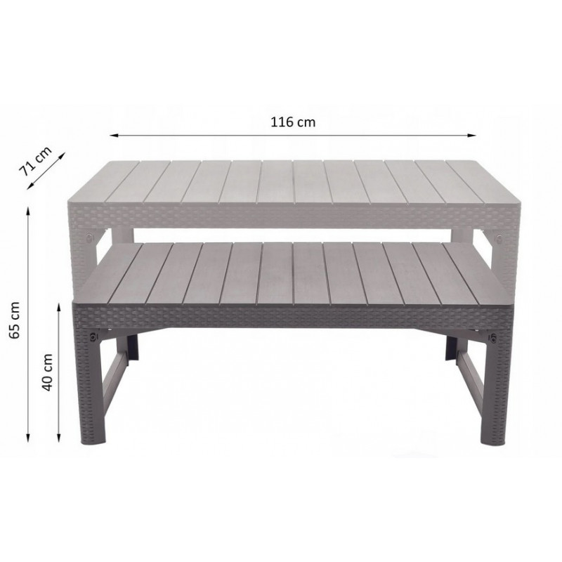 Пластиковий стіл Keter Lyon rattan table — це універсальний і практичний варіант для саду, тераси або дачі, що поєднує функціональність і стиль. Завдяки складній конструкції і можливості регулювання висоти, стіл можна адаптувати під різні сценарії використання: від кавового столика до обіднього. Виготовлений з міцного пластику з імітацією ротанга, він стійкий до вологи, ультрафіолету і механічних пошкоджень. Ергономічний дизайн, компактність і легка вага роблять стіл зручним для зберігання і транспортування. Максимальне навантаження - 75 кг. Підходить як для постійного використання, так і для сезонного розміщення на відкритому повітрі.