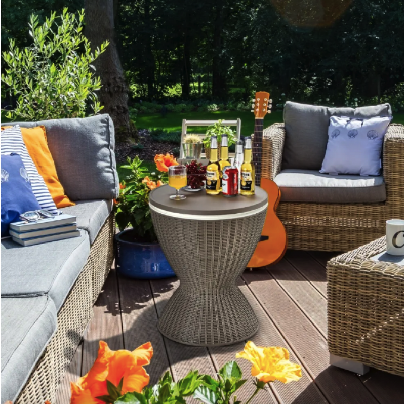 Уяви ідеальну літню вечірку: друзі, напої, легкий вітерець і зручне місце, де всі улюблені напої залишаються холодними, а закуски під рукою. Саме таким рішенням є Costway Curver 3-в-1 - стіл холодильник з регульованою висотою, який поєднує функціональність барного столу, відра для льоду та вуличного декору в стилі ротанга. Він стане справжнім центром подій на терасі, біля басейну чи під час кемпінгу. Його об'єм 30 літрів дозволяє розмістити багато напоїв або фруктів, а регульована висота (57см або 82см) дозволяє використовувати Curver як низький кавовий столик або барну стійку. Завдяки дренажній пробці, міцному PP-пластику, стійкості до сонця й води - він ідеально підходить для тривалого використання на відкритому повітрі. І, звісно, стільниця витримує до 75кг, тож це не просто декор, а справжній елемент інфраструктури твого відпочинку.