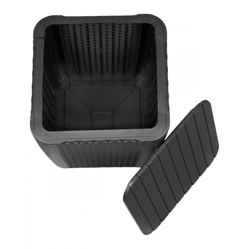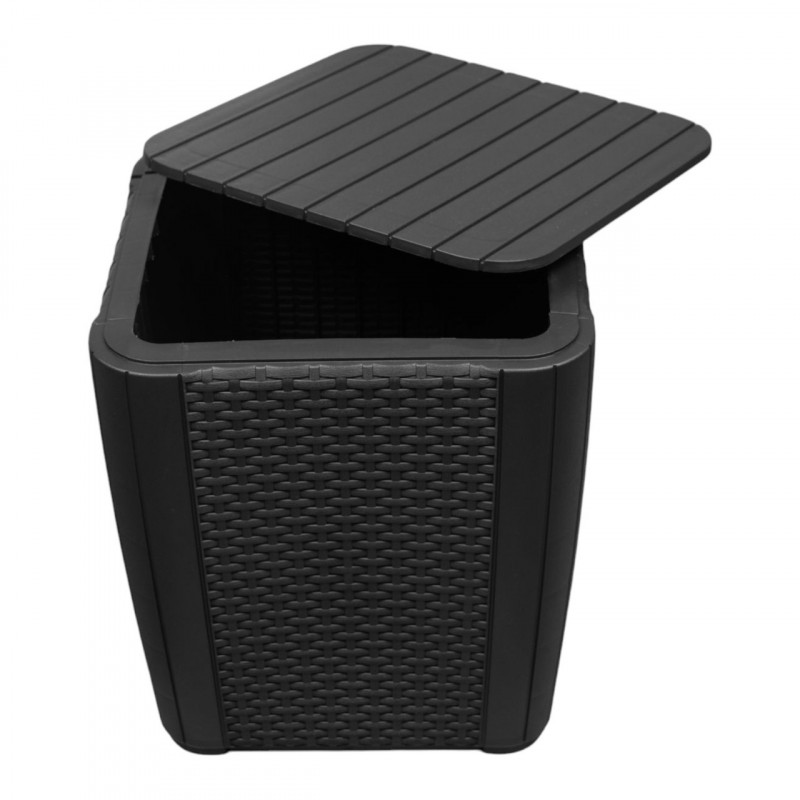 Пластиковий стіл-скриня Keter Luzon Flat — це стильне та практичне рішення для вашої тераси, балкона або саду. Виконаний в елегантному графітовому кольорі з імітацією ротангу, він гармонійно впишеться в будь-який інтер'єр і стане чудовим доповненням до вуличних меблів. Незважаючи на компактні розміри (висота — 425 мм, ширина і глибина — по 390 мм), стіл досить міцний — витримує навантаження до 110 кг. Крім того, він оснащений вбудованим відсіком для зберігання, у якому зручно розміщувати подушки, пледи або інші дрібниці. Легка вага (усього 3.1 кг) робить його мобільним і зручним для транспортування, а пластикова конструкція забезпечує стійкість до вологи, сонця та перепадів температури. Це ідеальний варіант для тих, хто цінує функціональність, сучасний дизайн і довговічність. Стіл-ящик Luzon Flat виготовлений із міцного пластику, який не піддається корозії, не гниє і не потребує спеціального догляду; Сучасний дизайн з імітацією ротангу надає меблям естетичного та вишуканого вигляду; Компактні розміри дозволяють використовувати стіл навіть у невеликих просторах, таких як балкон або лоджія; Вбудований відсік для зберігання робить виріб функціональним і допомагає підтримувати порядок; Легка конструкція дозволяє без зусиль переміщувати стіл у разі потреби; Колір стійкий до ультрафіолету — не вигоряє на сонці та зберігає привабливий вигляд з часом; Легко очищується від забруднень — достатньо протерти вологою ганчіркою або промити водою; Пластиковий садовий стіл-скриня Keter підходить як для використання просто неба, так і в приміщенні.