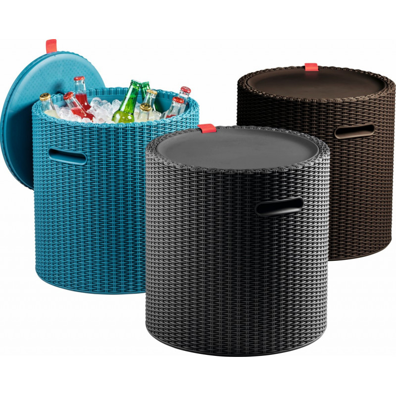 Стіл-скриня садова пластикова KETER COOL STOOL, коричневаБренд: Keter® (Ізраїль)Матеріал: фактурне плетіння пластику, що імітує «в'язану шерсть»Колір: коричневийРозмір столу (Д*Ш*В): 43,7*43,7*44,3 смВага: 3,5 кгРозмір упаковки (Д*Ш*В): 61*72*110 смГарантія: 24 місяціCOOL STOOL - це дуже функціональний, зручний столик з ящиком для зберігання. З подушкою на кришці, він ідеально підійде в якості сидіння. Стійкий до впливу несприятливих атмосферних чинників і УФ-випромінювання, легкий в утриманні в чистоті.Особливості: столик з місцем для зберігання