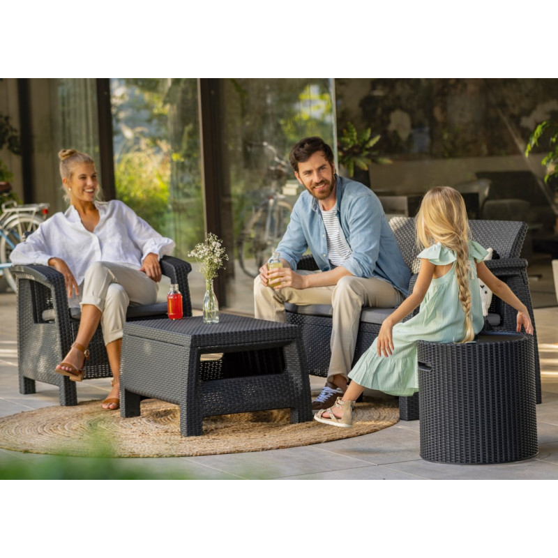 Особенности | • многофункциональный дизайн • стилизация под ротанг • компактность и вместительность • легкая установка • прочный погодостойкий пластик • не ржавеет и не выцветает на солнце • легкий в уходе |