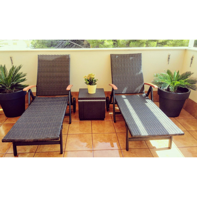 Allibert Ice Cube — це функціональний стіл-скриня з термоізоляцією, який стане ідеальним доповненням для пікніків, вечірок і заміського відпочинку. Виготовлений у графітовому кольорі з фактурою під штучний ротанг, він стильно виглядає та гармонійно поєднується з будь-якими садовими меблями. Стіл витримує навантаження до 110 кг і може використовуватись як додаткове сидіння. Внутрішній відсік об'ємом 33 л із гелевим акумулятором температури дозволяє зберігати прохолоду напоїв і продуктів упродовж кількох годин. Міцний пластик стійкий до вологи та ультрафіолету, не потребує спеціального догляду й не піддається корозії.Особливості Забезпечує термоізоляцію для зберігання охолоджених напоїв і продуктів завдяки вбудованому термоотсеку та акумулятору холоду; Багатофункціональне використання як столика, ящика для зберігання та додаткового місця для сидіння з навантаженням до 110 кг; Сучасний дизайн з оздобленням під штучний ротанг легко вписується в екстер’єр тераси або саду; Компактні розміри та корисний внутрішній об’єм 33 л роблять виріб зручним для виїздів і заходів на відкритому повітрі; Виготовлений із зносостійкого пластику, стійкого до погодних умов, вологи й УФ-випромінювання.
