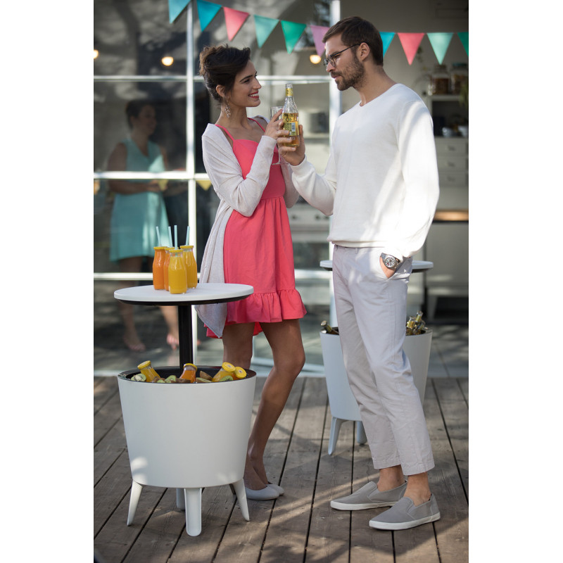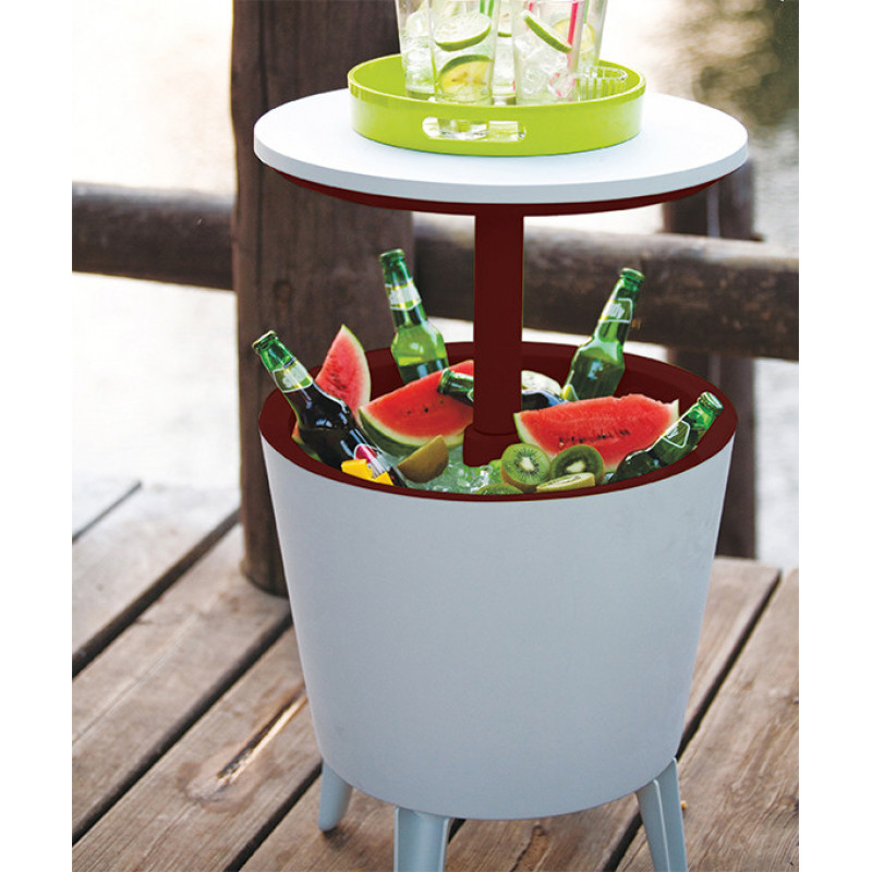 Стол - бар пластиковий Keter Cool BarФункціональний садовий бар, який виконує функції підручного столика, а в розкладеному вигляді може служити класичним баром з контейнером для охолодження напоїв. Завдяки елегантному дизайну, відділенню під функціональності, Cool Bar є дуже корисним рішенням для організації дружніх і сімейних посиденьок в саду.Бренд: Keter® (Ізраїль);Матеріал: гладкий пластик;Колір: беж+коричн.Розмір, см: 50*50*57 - 84,5Вага: 5,78 кг;Максимальне навантаження: 30 кг;Розмір упакування, см: 50*50*57