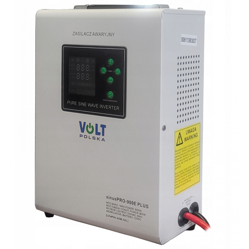 Комплект аварійного живлення VOLT Polska SINUS PRO 900 E PLUS 12/230V 600/900 Вт + LiFePO₄ акумулятор 12.8V 100Ah (150A) з BMS