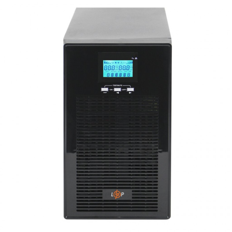 Корпус Smart-UPS LogicPower 3000 PRO (with battery) виготовлений з металевого сплаву. На передній панелі розташований LCD екран для контролю параметрів роботи пристрою.