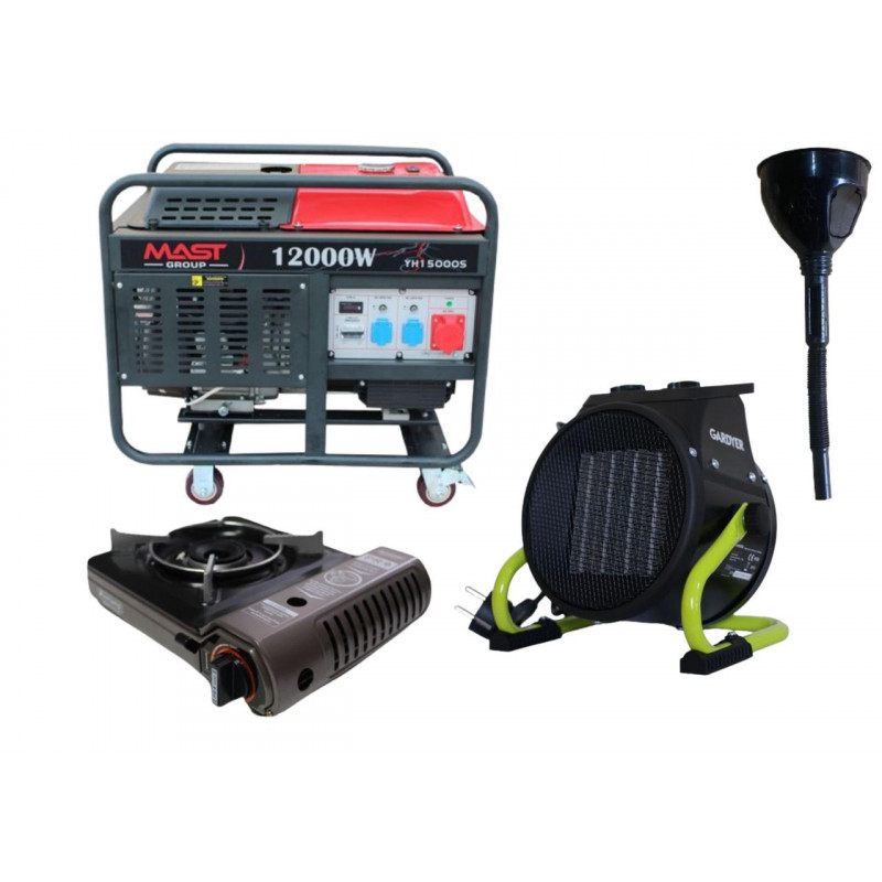 Бензиновий генератор MAST GROUP YH15000S + газова плитка Orcamp CK-505 + електричний обігрівач Gardyer HE2000