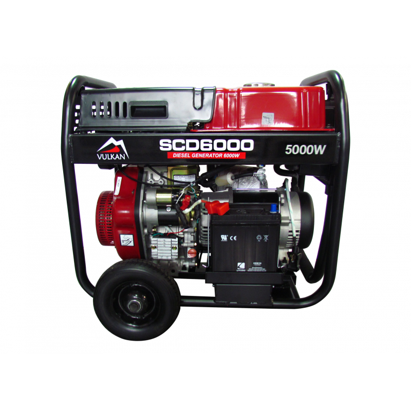 Дизельний генератор Vulkan SCD6000- пристрій для резервного живлення електрообладнання з номінальною потужністю 5 кВт. Завдяки місткому паливному баку на 18 л, робочий цикл генератора на максимальних навантаженнях може досягати 8 годин.