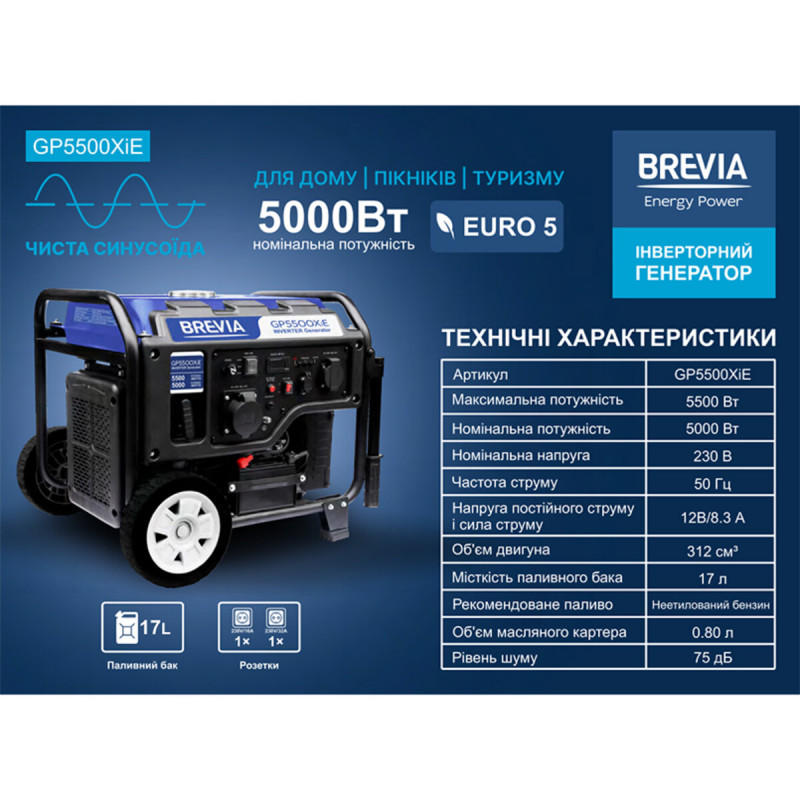 Генератор Brevia інверторний бензиновий 5,5кВт (ном 5,0кВт) з електростартером GP5500XiE