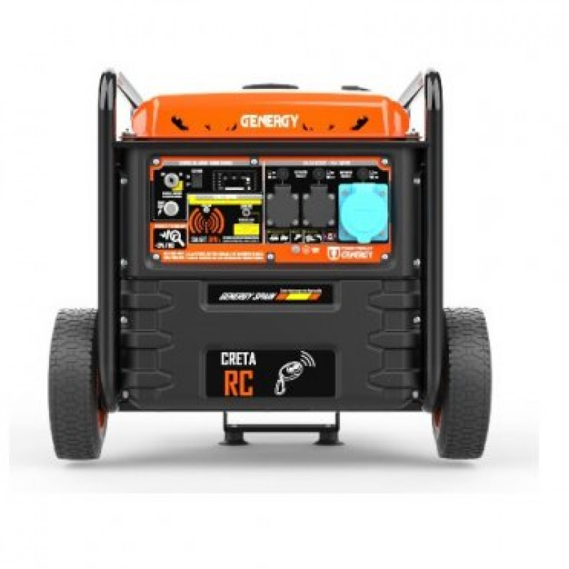 Генератор інверторний бензиновий GENERGY CRETA RC 7,5 кВт – однофазна 230В електростанція, призначена для забезпечення електроенергією приладів потужністю до 7,2 кВт (номінальна потужність). Максимальна потужність цього бензогенератора – 7,5 кВт. Виділяється серед аналогічних моделей наявністю пульта для дистанційного запуску, зменшеними масою та габаритами.