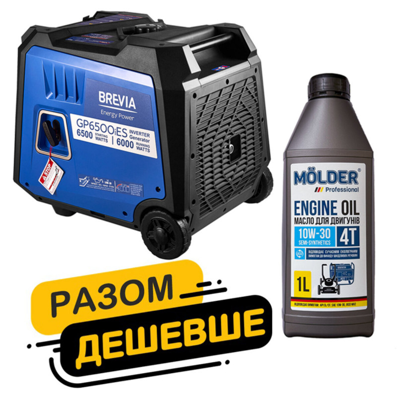 Комплект генератор Brevia інверторний бензиновий 6,5кВт з електростартером GP6500iES + масло Molder Engine Oil 4T 10W-30 1л