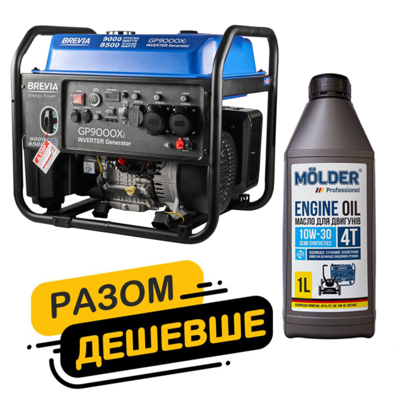 Комплект генератор Brevia інверторний бензиновий 9,0кВт з електростартером GP9000Xi + масло Molder Engine Oil 4T 10W-30 1л