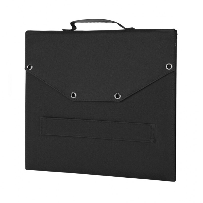 - Портативна сонячна панель виготовлена з якісних фотоелементів із високою продуктивністю. Клас захисту від шкідливих впливів довкілля IP67
