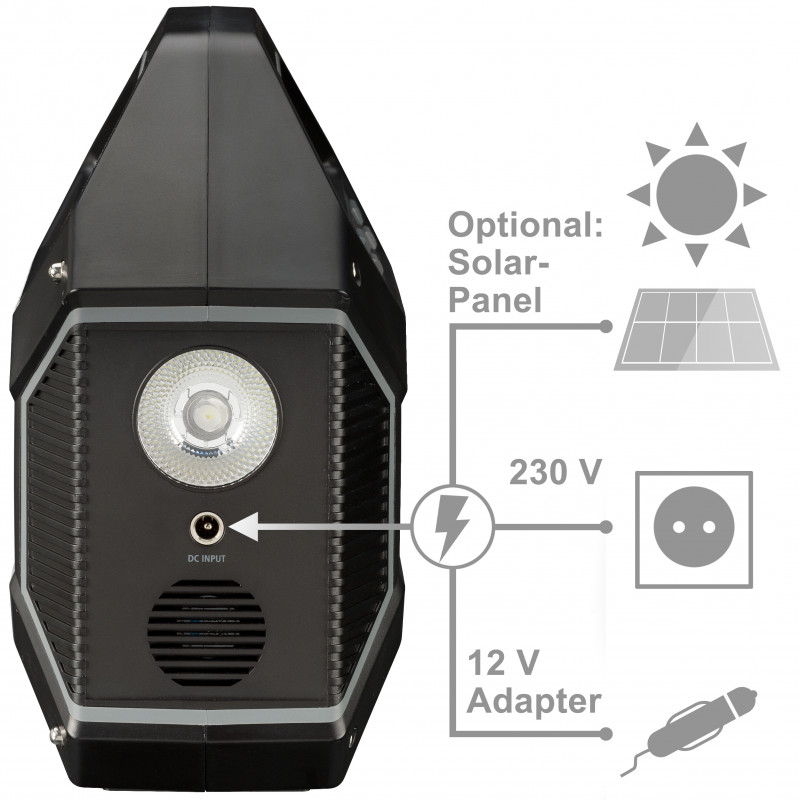 Портативну зарядну станцію Bresser Portable Power Supply 100 Watt (3810000), завдяки потужному літій-іонному акумулятору ємністю до 155 Вт-г і різним варіантам підключення, можна використовувати для заряджання майже всіх електронних пристроїв з найпоширенішими роз'ємами, будь то смартфони, планшети, ноутбуки чи повербанки. За допомогою перехідників на гніздо прикурювача, що входять до комплекту поставки, можна безпосередньо підключати пристрої для автомобілів та кемпінгу, такі як холодильники, водяні насоси, міні-компресори, тощо. Крім того, розетка постійного струму 230 V, 100 W може використовуватися для підключення зарядних пристроїв цього класу потужності. На дисплеї відображається вся необхідна інформація, така як стан заряду акумулятора, процес зарядки акумулятора, увімкнення/вимкнення. Зарядну станцію Bresser Portable Power Supply 100 Watt (3810000) можна заряджати від мережі 220В (адаптор у комплекті) або за допомогою перехідника на гніздо автомобільного прикурювача (перехідник у комплекті). Також станцію можна заряджати і від сонячної панелі (до комплекту не входить).