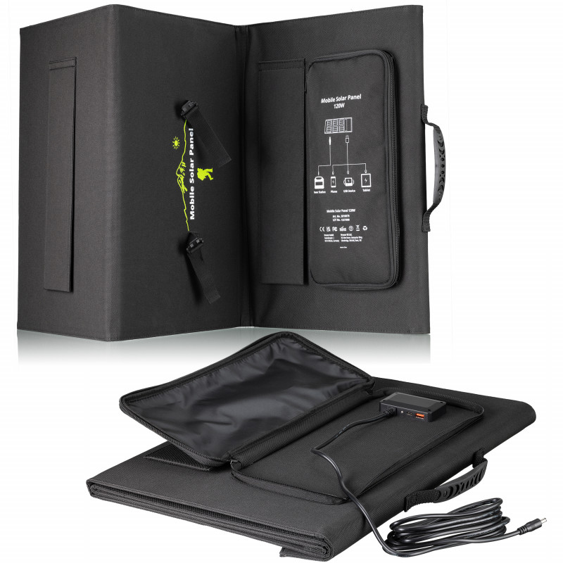 Портативний сонячний зарядний пристрій Bresser Mobile Solar Charger 120 Watt призначений швидко заряджати смартфони, планшети, ноутбуки та зовнішні акумуляторні батареї. Інноваційна технологія сонячних батарей, на основі монокристалічних кремнієвих елементів, забезпечує високу ефективність та максимально швидку зарядку різних акумуляторів. Міцна та надійна тканина Cordura захищає сонячну панель від механічних пошкоджень та забезпечує необхідну стабільність під час використання. Сонячна панель має додатковий захист завдяки застосуванню при виготовленні пило- та водовідштовхувальних матеріалів, але не розрахована на використання під проливним дощем або зануренню безпосередньо у воду. Для надійної фіксації панелі до об'єкту (палатка, автомобіль, рюкзак, дерево), в комплект поставки входять 4 карабіни.