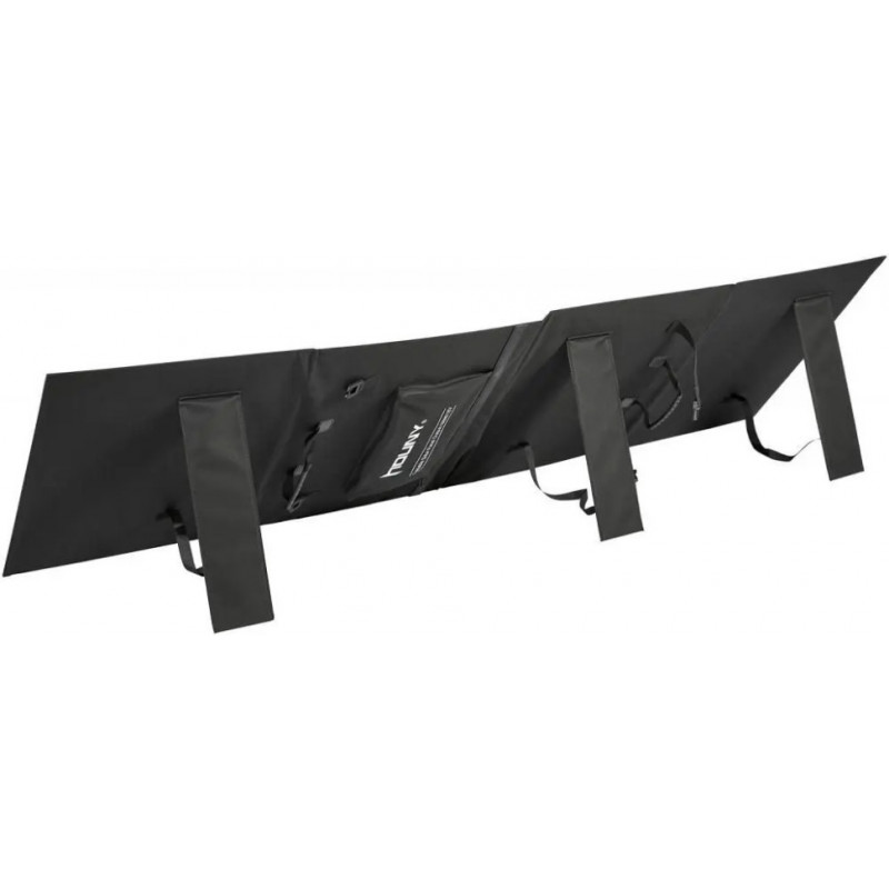 Сонячна панель Houny 160 Вт використовує сонячне світло як джерело енергії для вироблення електроенергії постійного струму, для заряджання повербанків та портативних зарядних пристроїв. Вона перетворює до 22% сонячної енергії на екологічно чисту та безкоштовну енергію. Складана конструкція сонячної панелі робить її компактною під час зберігання і транспортування. Сонячні панелі вбудовані в захисний чохол, склавши який виходить зручний чемоданчик з ручкою. Тканинна частина чохла виконана з сучасних матеріалів (ПЕТ, ЕВА, ПВХ), завдяки чому матеріал має водонепроникні властивості, і зможе захистити сонячні панелі від невеликого літнього дощу, але зловживати цією властивістю не варто, тому зберігайте сонячну панель у сухому місці.
