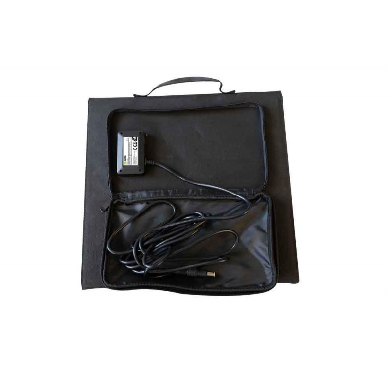 Для ефективного збору сонячної енергії використовуються монокристалічні кремнієві елементи, розділені на 3 секції. Завдяки максимальному використанню поверхні панель забезпечує високу потужність навіть при невисокому рівні сонячного світла. Ця портативна сонячна панель має складану конструкцію і у складеному вигляді займає мало місця.