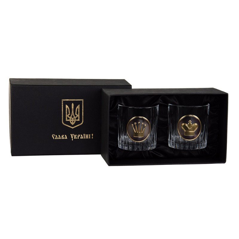 Набір келихів для віскі "ШАХИ" Boss Crystal, 2 келиха, срібло, золото, чистий кришталь