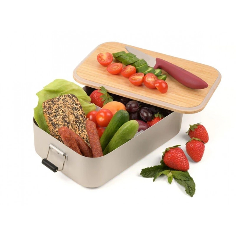 Ланч-бокс XL Troika з засувкою, алюміній та бамбукова кришка