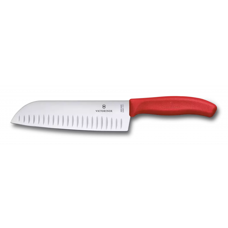Кухонний ніж Сантоку 17 см Victorinox SwissClassic Santoku лезо гладке з канавками (рифлене), червоний, блістер (6.8521.17C1B)