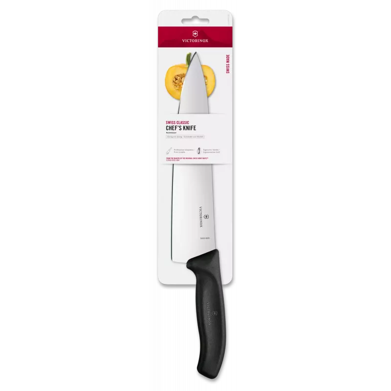 Кухонний шеф-ніж 25 см Victorinox Swiss Classic Chef's лезо рівне , чорний, блістер (6.8003.25B)