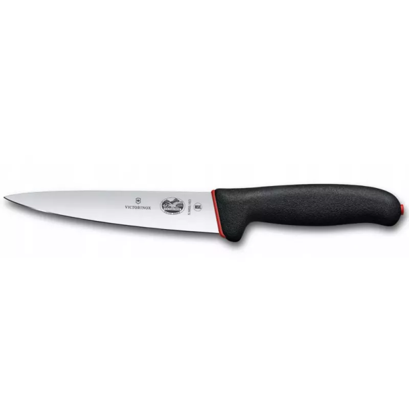 Кухонний універсальний ніж для м'яса 16 см Victorinox Dual Grip Sticking лезо гладке, чорно-червоний (5.5603.16D)