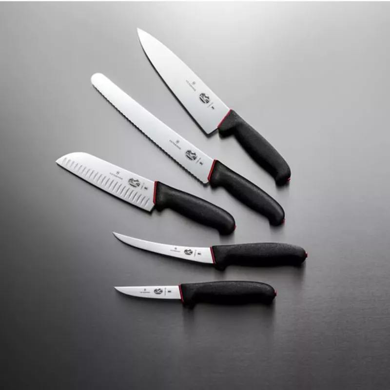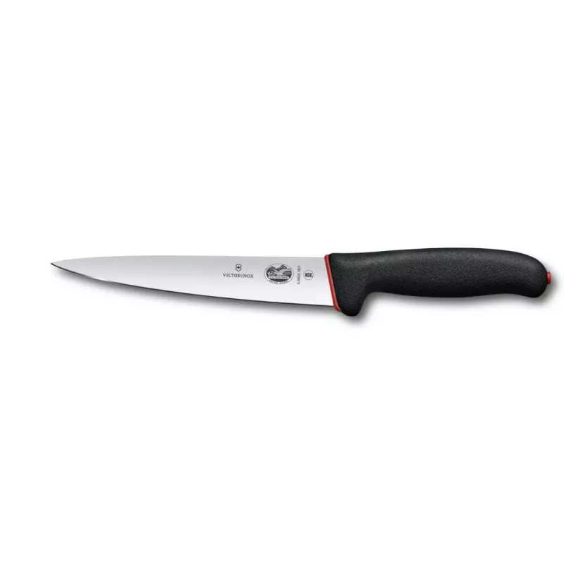 Кухонний універсальний ніж для м'яса 18 см Victorinox Dual Grip Sticking лезо гладке, чорно-червоний (5.5603.18D)