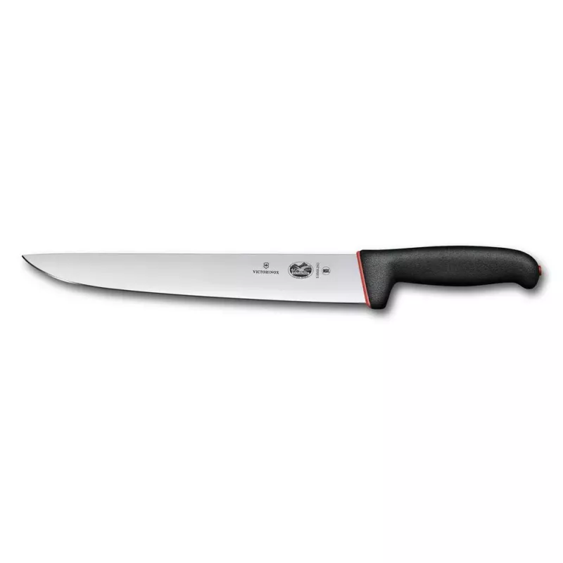 Кухонний універсальний ніж для м'яса 25 см Victorinox Dual Grip Sticking лезо гладке, чорно-червоний (5.5503.25D)